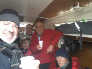 Tras recoger a la tripulación del Sandra, brindamos por el nuevo año y la nueva temporada de regatas.