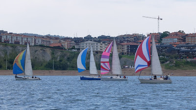 Todos los barcos que van delante de nosotros dejan libre El Cajón, así que decidimos hacer lo mismo. Navegación tranquila hasta Recalada. Parece que las condiciones no dan para spi (través, casi largo), pero pronto hay barcos que empiezan a montarlo y se ve que no les va mal. No perdemos más tiempo y montamos el "balón" nuevo. EMILU navega de maravilla. Mantenemos a raya a los barcos de atrás, pero los de delante empiezan a coger distancia con nosotros. La mayor parte de la flota ha elegido alejarse de la costa más que nosotros. Paciencia. No estamos navegando mal. Habrá que esperar nuestro momento. Por desgracia, entre Castro Urdiales e Islares, cae el viento mucho y navegamos bastante lentos ese tramo. Finalmente, poco antes de La Ballena salta un viento que nos llevará hasta Laredo "a toda vela" prácticamente de popa todo el tiempo. Trasluchamos sólo una vez y en el momento adecuado. Eso hace que recuperemos mucho tiempo con los barcos de delante. El resultado final de EMILU, 3h 46' 26", es una muy buena marca para el recorrido Getxo-Laredo. La pena es que la clasificación (14º de 29) no hace justicia a las buenas sensaciones que hemos tenido.