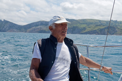 Saliendo de la bahía y tras pasar Cabo Mayor, vamos a rumbo directo hacia Gijón con el viento por la amura de babor, navegando a buena velocidad. Nos vamos turnando a la caña. Mi turno termina a las diez, con Comillas en la proa. Me tumbo a dormir, y cuando salgo a la una de la mañana Comillas está en el través. A las tres no hemos llegado a San Vicente, momento en el que se toma la decisión de poner en marcha el motor. Fuimos alternando motor y vela según el viento. Al mediodía baño frente a Tazones.